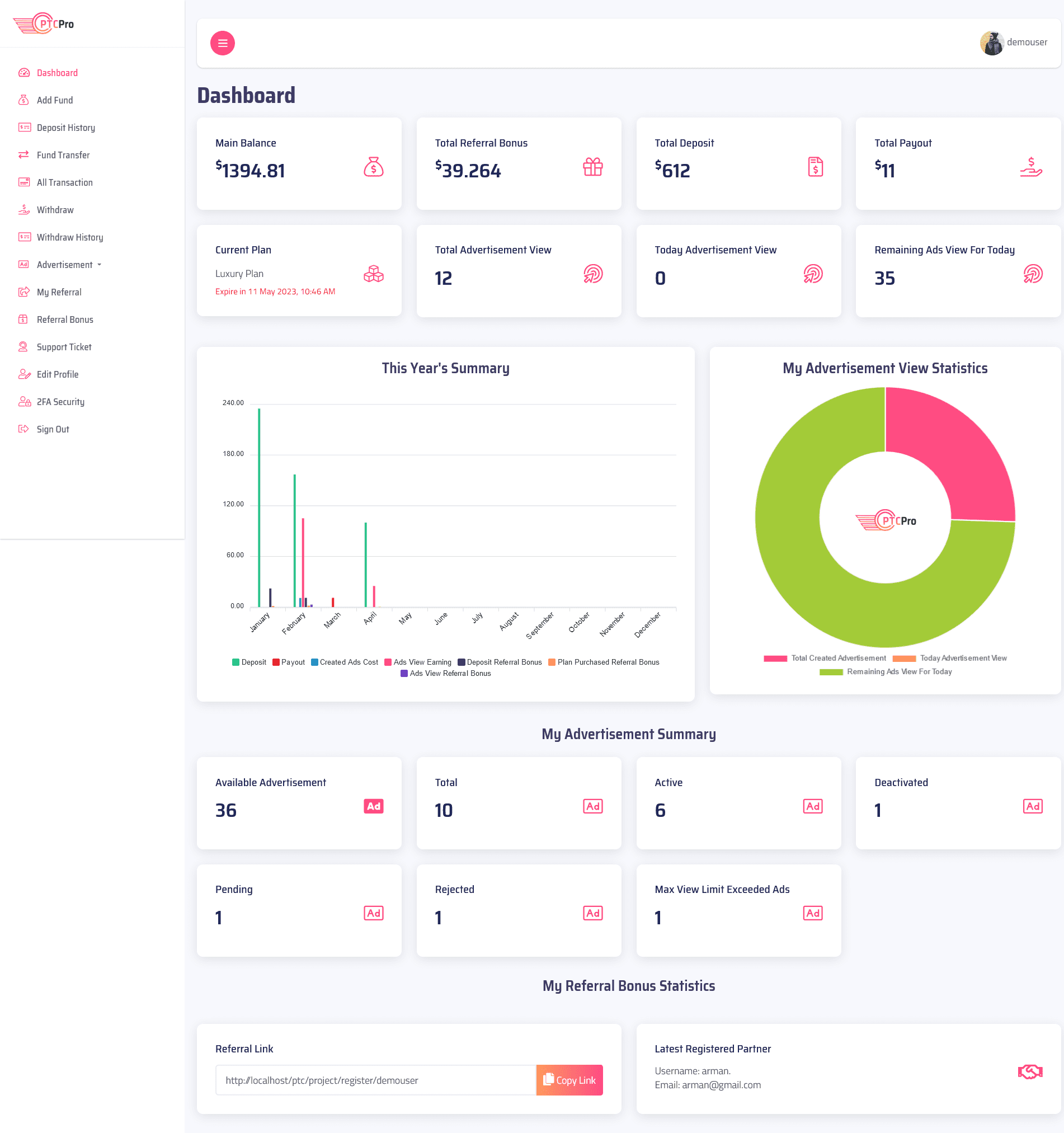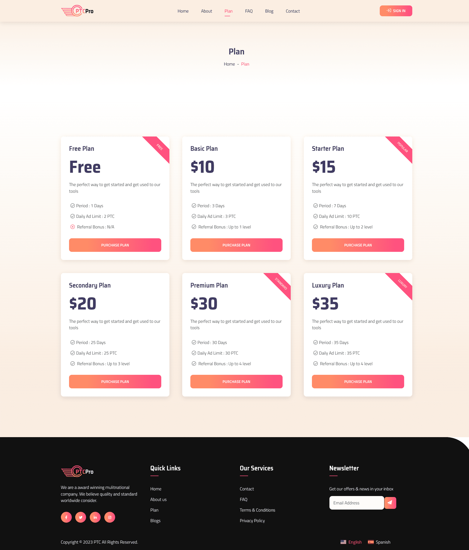 PTCPro is a feature-packed Pay Per Click (PPC) platform that offers everything businesses need to manage their advertising campaigns and generate more traffic, leads, and sales. With 37 automated payment gateways, including popular options like PayPal, Paytm, and Stripe, PTCPro makes it easy for businesses to manage their advertising budget and receive payments from advertisers.